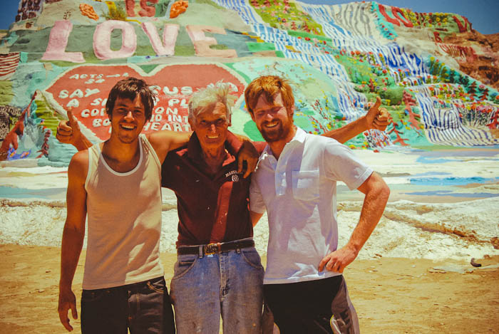 After learning about Knight’s death, at age 82, yesterday, we decided to pay our quick tribute. Back in 2008, we were traveling through the deserts of California and decided to stop by ‘Slab City’ to meet the infamous Leonard Knight. We first learned about him and his creation, Salvation Mountain, from the movie, Into the Wild. Upon arrival, Leonard immediately greeted us with a huge smile, open arms and an eagerness to show us all around his colorful paradise. We spent an hour or so with him, as not to keep him too long, and left with open eyes and open hearts. For the entire hour, he talked only about Love and what it means to the world.